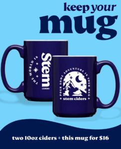 Two 10oz pours + a limited-edition Stem Ciders mug.